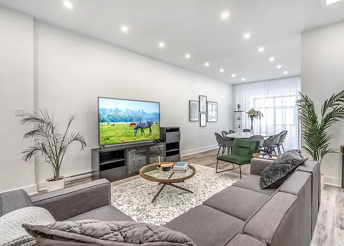 Situated a 5-minute walk from Place Ville Marie Observatory Observation Platform, the 1-room Cozy Oasis Double King Size Bed: Bell Center - Heart Of Downtown Apartment offers proximity to various nearby tourist attractions. This spacious apartment has public parking nearby.
